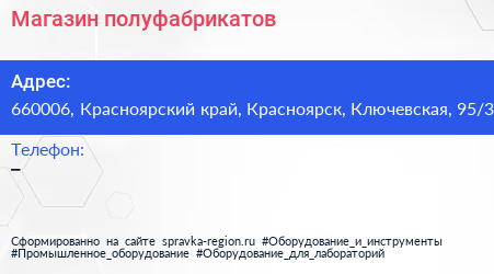 Магазин полуфабрикатов по адресу 660006, Красноярский край, Красноярск, Ключевская, 95/3 в дальнейшем Организация, размещена в следующих категориях: