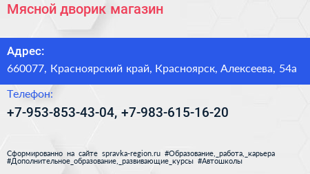Мясной дворик, магазин по адресу 660077, Красноярский край, Красноярск, Алексеева, 54а в дальнейшем Организация, размещена в следующих категориях: