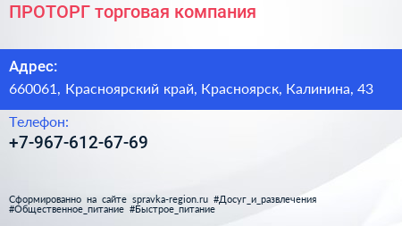 ПРОТОРГ, торговая компания по адресу 660061, Красноярский край, Красноярск, Калинина, 43 в дальнейшем Организация, размещена в следующих категориях: