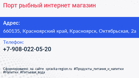 Порт, рыбный интернет-магазин по адресу 660135, Красноярский край, Красноярск, Октябрьская, 2а в дальнейшем Организация, размещена в следующих категориях: