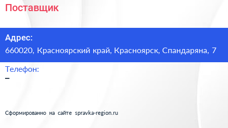 Поставщик по адресу 660020, Красноярский край, Красноярск, Спандаряна, 7 в дальнейшем Организация, размещена в следующих категориях: