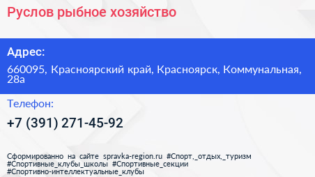 Руслов, рыбное хозяйство по адресу 660095, Красноярский край, Красноярск, Коммунальная, 28а в дальнейшем Организация, размещена в следующих категориях: