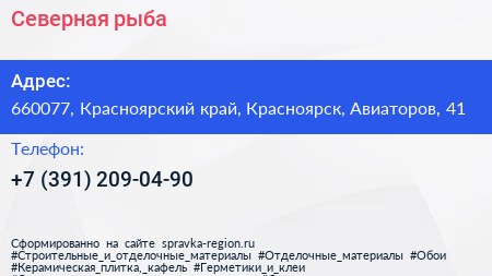 Северная рыба по адресу 660077, Красноярский край, Красноярск, Авиаторов, 41 в дальнейшем Организация, размещена в следующих категориях: