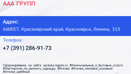 ААА ГРУПП по адресу 660017, Красноярский край, Красноярск, Ленина, 113 в дальнейшем Организация, размещена в следующих категориях: