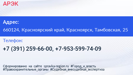 АРЭК по адресу 660124, Красноярский край, Красноярск, Тамбовская, 25 в дальнейшем Организация, размещена в следующих категориях: