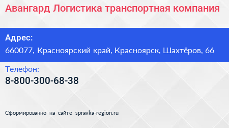 Авангард-Логистика, транспортная компания по адресу 660077, Красноярский край, Красноярск, Шахтёров, 66 в дальнейшем Организация, размещена в следующих категориях: