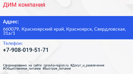 ДИМ, компания по адресу 660079, Красноярский край, Красноярск, Свердловская, 31а/1 в дальнейшем Организация, размещена в следующих категориях: