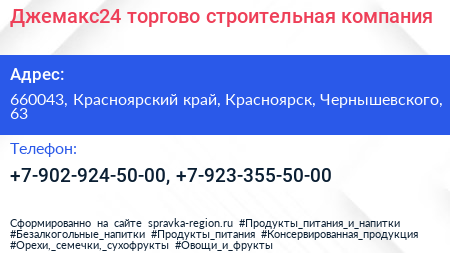 Джемакс24, торгово-строительная компания по адресу 660043, Красноярский край, Красноярск, Чернышевского, 63 в дальнейшем Организация, размещена в следующих категориях: