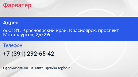 Фарватер по адресу 660131, Красноярский край, Красноярск, проспект Металлургов, 2д/29г в дальнейшем Организация, размещена в следующих категориях: