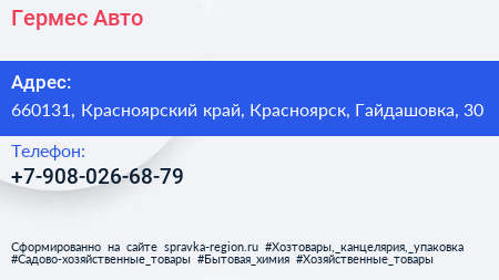 Гермес-Авто по адресу 660131, Красноярский край, Красноярск, Гайдашовка, 30 в дальнейшем Организация, размещена в следующих категориях: