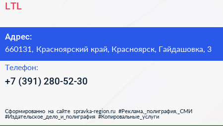 LTL по адресу 660131, Красноярский край, Красноярск, Гайдашовка, 3 в дальнейшем Организация, размещена в следующих категориях: