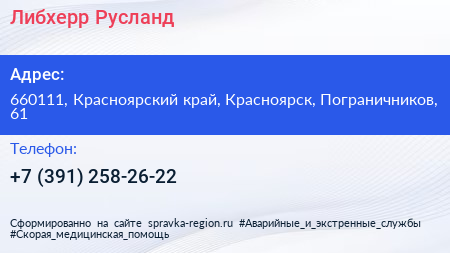 Либхерр-Русланд по адресу 660111, Красноярский край, Красноярск, Пограничников, 61 в дальнейшем Организация, размещена в следующих категориях: