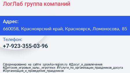 ЛогЛаб, группа компаний по адресу 660058, Красноярский край, Красноярск, Ломоносова, 85 в дальнейшем Организация, размещена в следующих категориях: