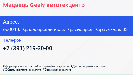 Медведь Geely, автотехцентр по адресу 660048, Красноярский край, Красноярск, Караульная, 33 в дальнейшем Организация, размещена в следующих категориях:
