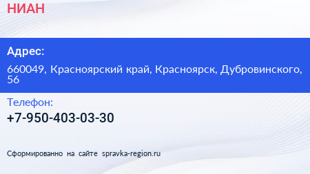 НИАН по адресу 660049, Красноярский край, Красноярск, Дубровинского, 56 в дальнейшем Организация, размещена в следующих категориях: