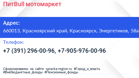 ПитBull, мотомаркет по адресу 660013, Красноярский край, Красноярск, Энергетиков, 58а в дальнейшем Организация, размещена в следующих категориях:
