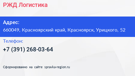 РЖД Логистика по адресу 660049, Красноярский край, Красноярск, Урицкого, 52 в дальнейшем Организация, размещена в следующих категориях: