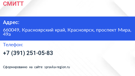 СМИТТ по адресу 660049, Красноярский край, Красноярск, проспект Мира, 49а в дальнейшем Организация, размещена в следующих категориях: