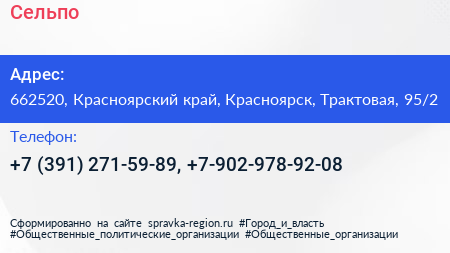 Сельпо по адресу 662520, Красноярский край, Красноярск, Трактовая, 95/2 в дальнейшем Организация, размещена в следующих категориях: