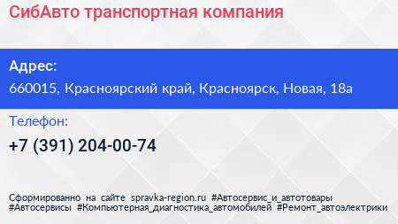 СибАвто, транспортная компания по адресу 660015, Красноярский край, Красноярск, Новая, 18а в дальнейшем Организация, размещена в следующих категориях: