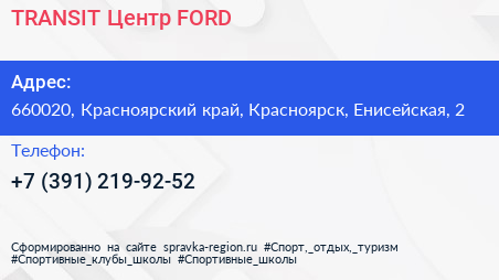 TRANSIT Центр FORD по адресу 660020, Красноярский край, Красноярск, Енисейская, 2 в дальнейшем Организация, размещена в следующих категориях: