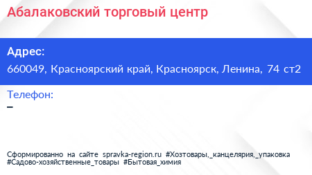 Абалаковский, торговый центр по адресу 660049, Красноярский край, Красноярск, Ленина, 74 ст2 в дальнейшем Организация, размещена в следующих категориях: