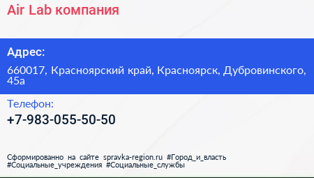 Air.Lab, компания по адресу 660017, Красноярский край, Красноярск, Дубровинского, 45а в дальнейшем Организация, размещена в следующих категориях: