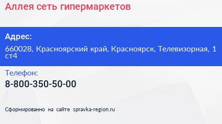 Аллея, сеть гипермаркетов по адресу 660028, Красноярский край, Красноярск, Телевизорная, 1 ст4 в дальнейшем Организация, размещена в следующих категориях: