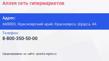 Аллея, сеть гипермаркетов по адресу 660003, Красноярский край, Красноярск, Щорса, 44 в дальнейшем Организация, размещена в следующих категориях:
