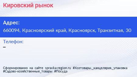 Кировский рынок по адресу 660094, Красноярский край, Красноярск, Транзитная, 30 в дальнейшем Организация, размещена в следующих категориях: