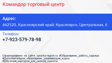 Командор, торговый центр по адресу 662520, Красноярский край, Красноярск, Центральная, 6 в дальнейшем Организация, размещена в следующих категориях: