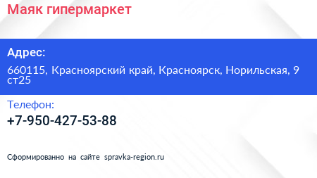 Маяк, гипермаркет по адресу 660115, Красноярский край, Красноярск, Норильская, 9 ст25 в дальнейшем Организация, размещена в следующих категориях: