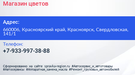 Магазин цветов по адресу 660006, Красноярский край, Красноярск, Свердловская, 141/1 в дальнейшем Организация, размещена в следующих категориях: