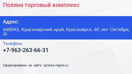 Поляна, торговый комплекс по адресу 660042, Красноярский край, Красноярск, 60 лет Октября, 2г в дальнейшем Организация, размещена в следующих категориях: