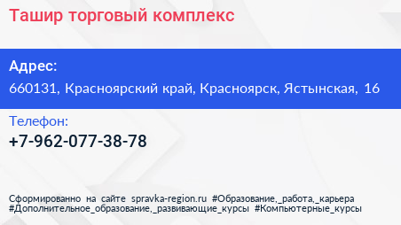 Ташир, торговый комплекс по адресу 660131, Красноярский край, Красноярск, Ястынская, 16 в дальнейшем Организация, размещена в следующих категориях: