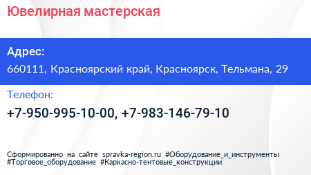Ювелирная мастерская по адресу 660111, Красноярский край, Красноярск, Тельмана, 29 в дальнейшем Организация, размещена в следующих категориях: