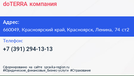 doTERRA, компания по адресу 660049, Красноярский край, Красноярск, Ленина, 74 ст2 в дальнейшем Организация, размещена в следующих категориях: