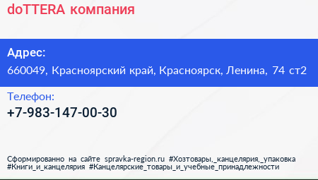 doTTERA, компания по адресу 660049, Красноярский край, Красноярск, Ленина, 74 ст2 в дальнейшем Организация, размещена в следующих категориях: