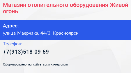 Магазин отопительного оборудования «Живой огонь» по адресу улица Маерчака, 44/3, Красноярск в дальнейшем Организация, размещена в следующих категориях: