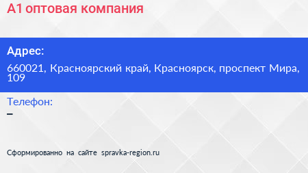 А1, оптовая компания по адресу 660021, Красноярский край, Красноярск, проспект Мира, 109 в дальнейшем Организация, размещена в следующих категориях: