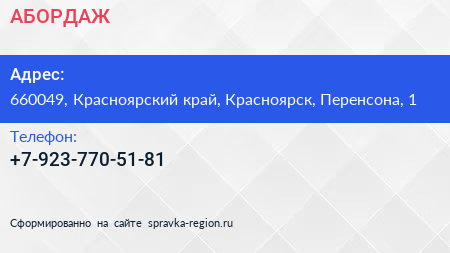 АБОРДАЖ по адресу 660049, Красноярский край, Красноярск, Перенсона, 1 в дальнейшем Организация, размещена в следующих категориях: