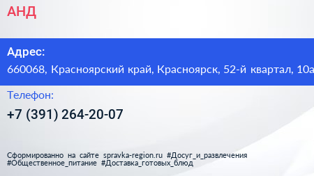 АНД по адресу 660068, Красноярский край, Красноярск, 52-й квартал, 10а в дальнейшем Организация, размещена в следующих категориях: