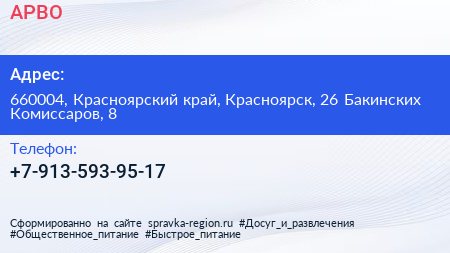 АРВО по адресу 660004, Красноярский край, Красноярск, 26 Бакинских Комиссаров, 8 в дальнейшем Организация, размещена в следующих категориях: