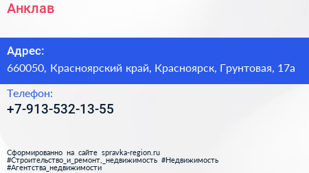 Анклав по адресу 660050, Красноярский край, Красноярск, Грунтовая, 17а в дальнейшем Организация, размещена в следующих категориях:
