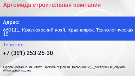 Артемида, строительная компания по адресу 660111, Красноярский край, Красноярск, Технологическая, 15 в дальнейшем Организация, размещена в следующих категориях: