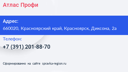 Атлас Профи по адресу 660020, Красноярский край, Красноярск, Диксона, 2а в дальнейшем Организация, размещена в следующих категориях: