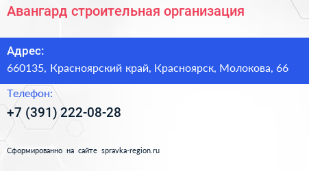 Авангард, строительная организация по адресу 660135, Красноярский край, Красноярск, Молокова, 66 в дальнейшем Организация, размещена в следующих категориях: