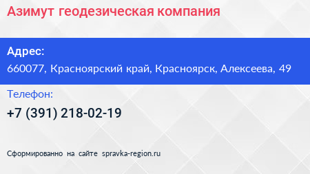 Азимут, геодезическая компания по адресу 660077, Красноярский край, Красноярск, Алексеева, 49 в дальнейшем Организация, размещена в следующих категориях: