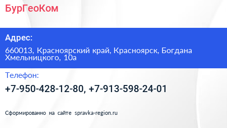 БурГеоКом по адресу 660013, Красноярский край, Красноярск, Богдана Хмельницкого, 10а в дальнейшем Организация, размещена в следующих категориях: