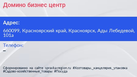 Домино, бизнес-центр по адресу 660099, Красноярский край, Красноярск, Ады Лебедевой, 101а в дальнейшем Организация, размещена в следующих категориях: